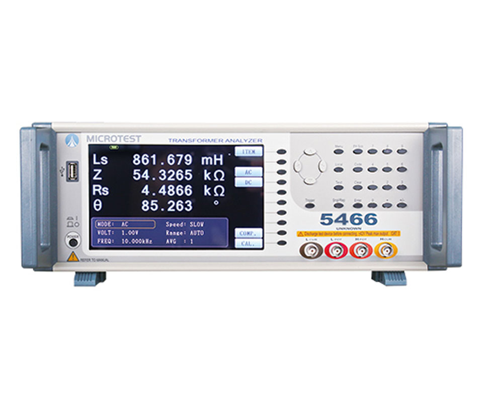 益和 5466 變壓器, 測試頻率為 10Hz-500kHz,測試點位為48 點。基本精準度 ±0.1%,搭配F5648測試治具(含100mA直流偏置電流)。內(nèi)建可儲存128組測試檔案。支援RS-232、Handler、LAN、USB Host等介面。適用于各種變壓器進料、檢驗、品保等檢測部門。